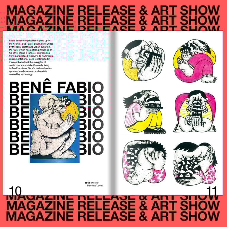 RELISH is our second title and community art program featuring a group of artists in a specific city or region. The magazine launches with a group show with all featured artists.
